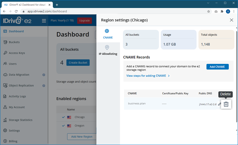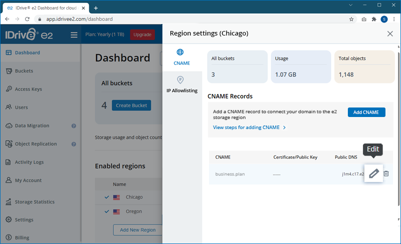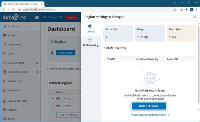 Map IDrive® e2 Endpoint to Your CNAME